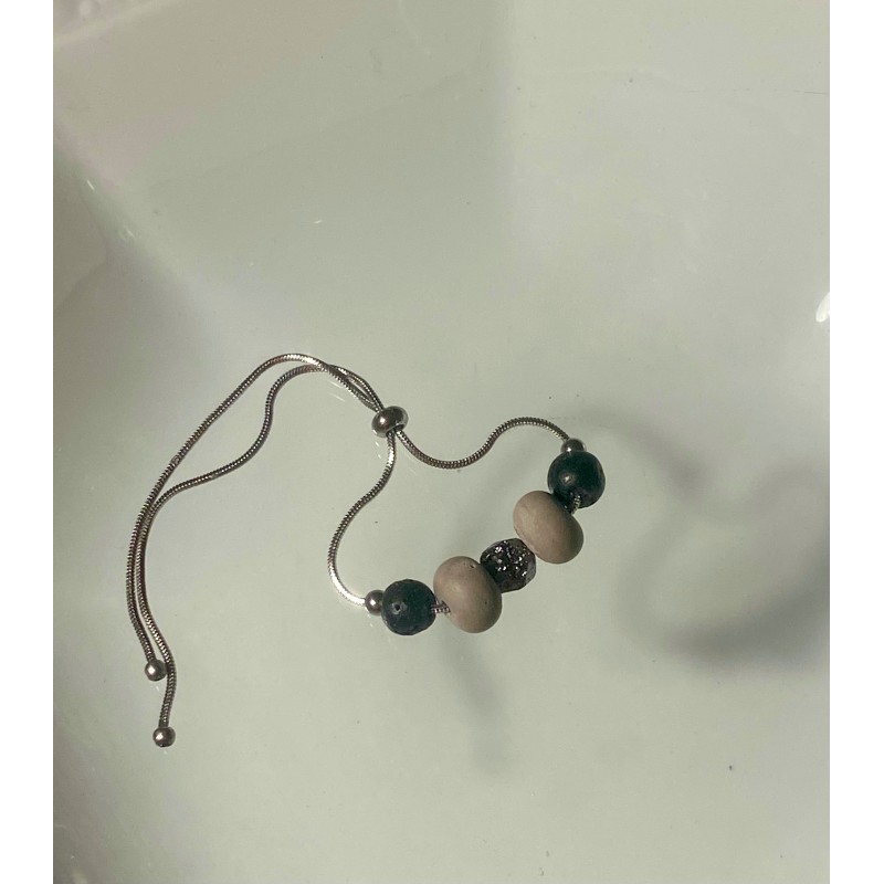 Díky stoperu se dá řetízek zkracovat a prodlužovat, takže se jednoduše navléká na ruku. Stoper, které je navlečenýna řetízku náramku zase drží jednotlivé kuličky a zajišťují, že náramek stále skvěle drží tvar. Další výhodou je, že náramek se tak vejde na jakkoliv buclatou nebo útlou ručku - stoperem se řetízek utáhne podle potřeby. Řetízek je z kvalitní hypoalergenní chirurgické oceli.