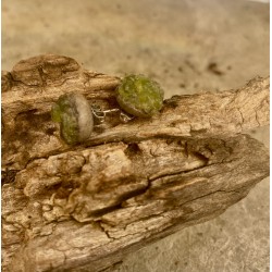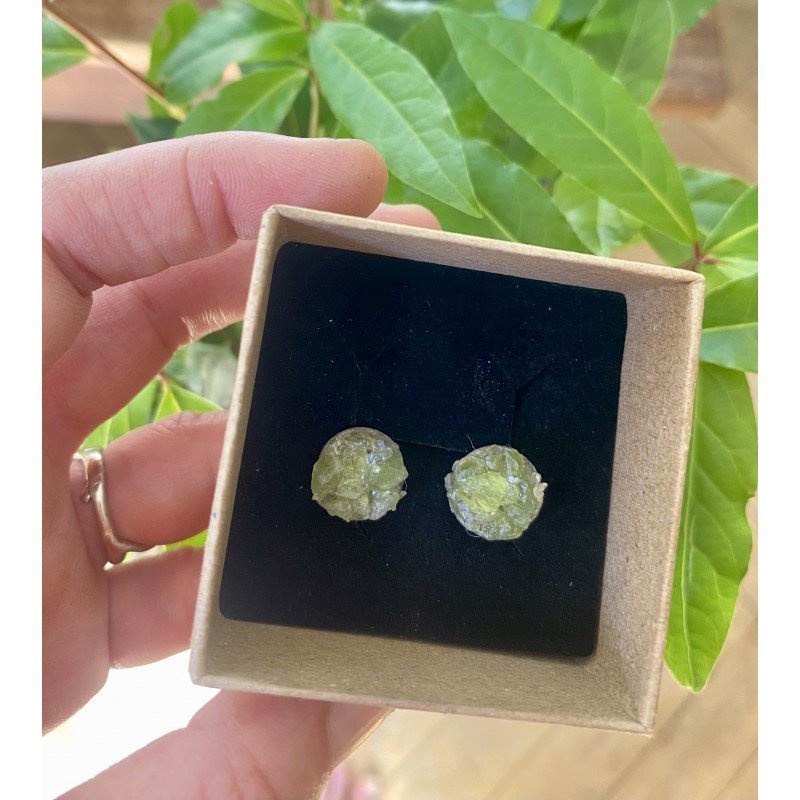 Rondelky s olivínem. Velikost 0,9 cm v průměru. Materiál: lehoučký šperkařský beton, krystalky s olivínem a kvalitní chirurgická ocel.